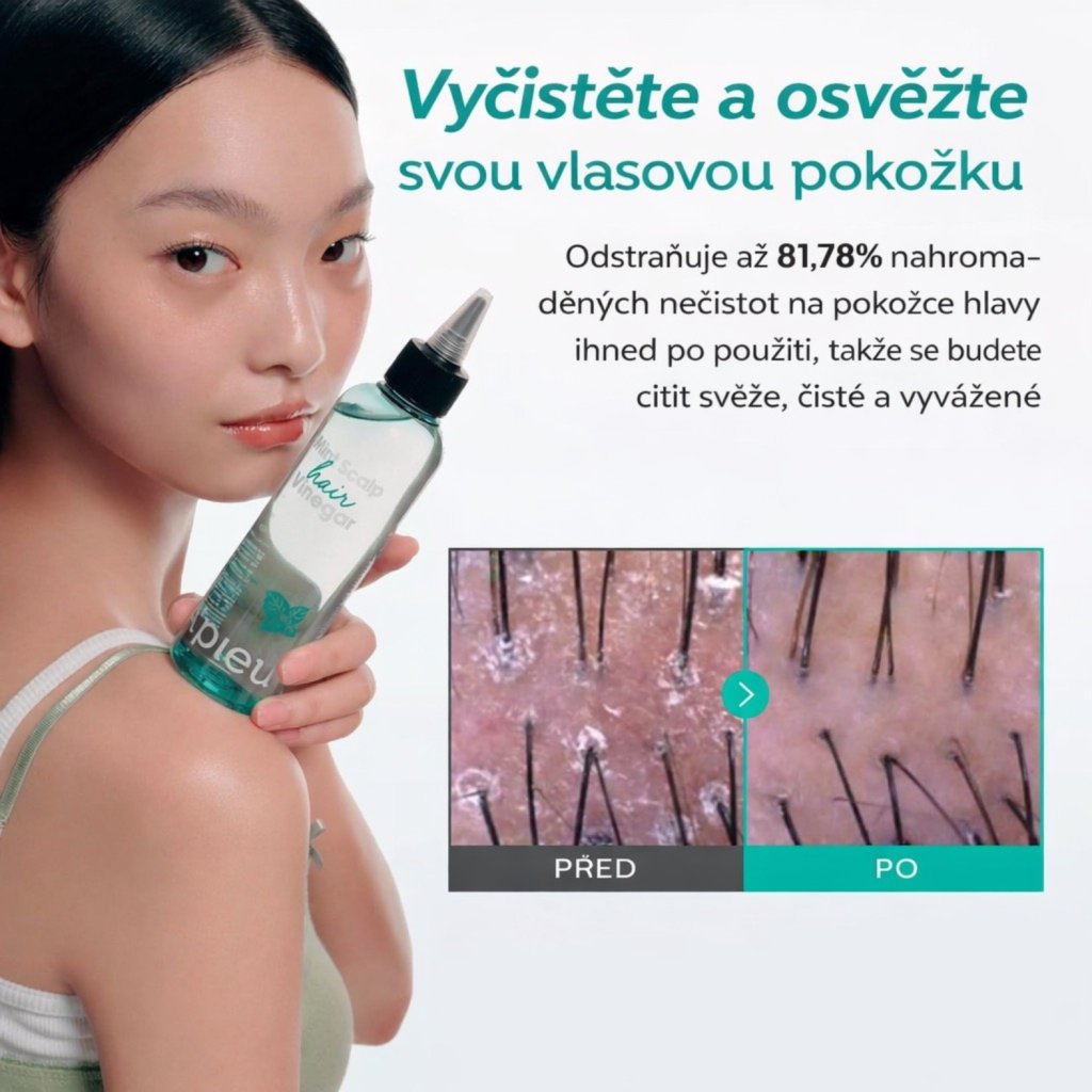 Tento hydratační a tonizující produkt od korejské značky A’PIEU je navržen pro pravidelnou péči o pokožku hlavy a vlasy po šamponování. Formule s vysokým obsahem octu (až 20 000 ppm) pomáhá udržovat optimální rovnováhu oleje a vlhkosti pokožky hlavy a odstraňuje nečistoty a suché šupinky. Komplex tří mát (peppermint, spearmint a dalších mentholových výtažků) poskytuje chladivý pocit, podporuje prokrvení a mikrocirkulaci, zanechává vlasovou pokožku svěží, revitalizovanou a připravenou pro další styling nebo péči. Produkt zároveň pomáhá uklidňovat pocit svědění a přispívá ke zdravějšímu vzhledu vlasů.