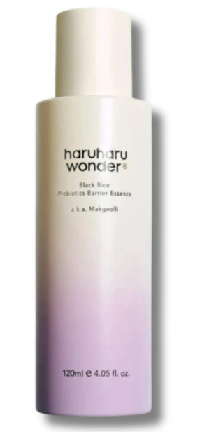 - Haruharu Wonder Black Rice Probiotics Barrier mléčná esence– esence s probiotiky a fermentovanou černou rýží pro zklidnění pleti a posílení její bariéry