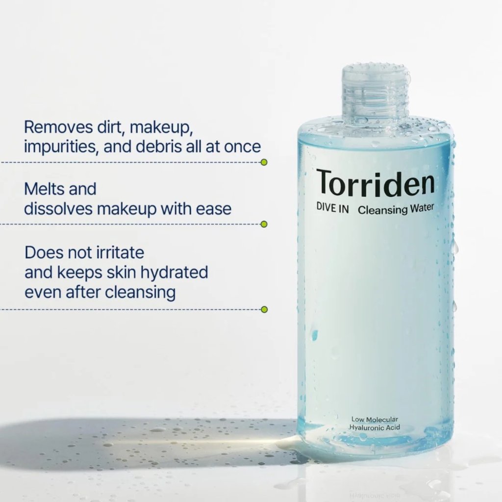 Torriden - DIVE-IN Low Molecular Hyaluronic Acid Cleansing Water – Jemná čisticí pleťová voda s nízkomolekulární kyselinou hyaluronovou – 400 ml