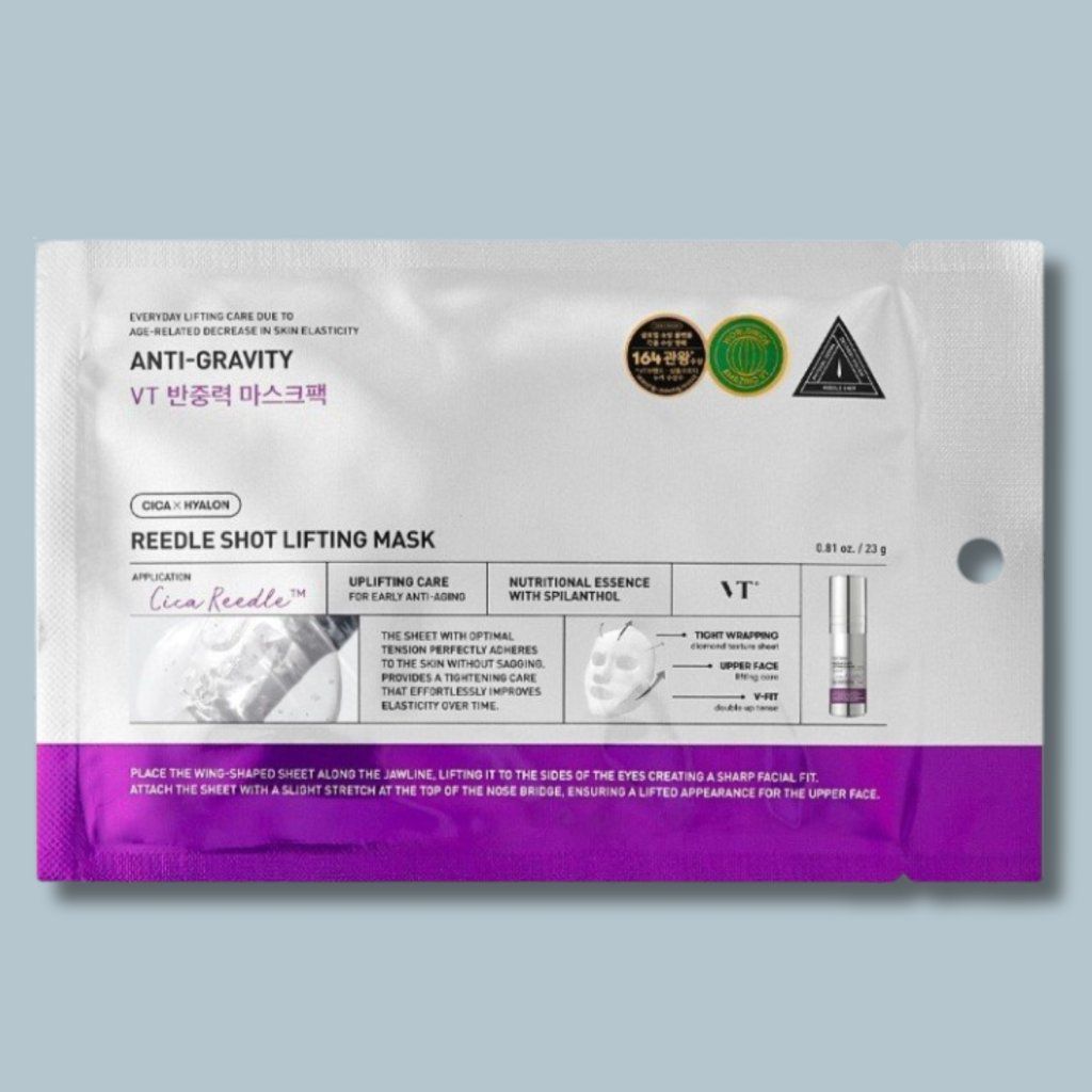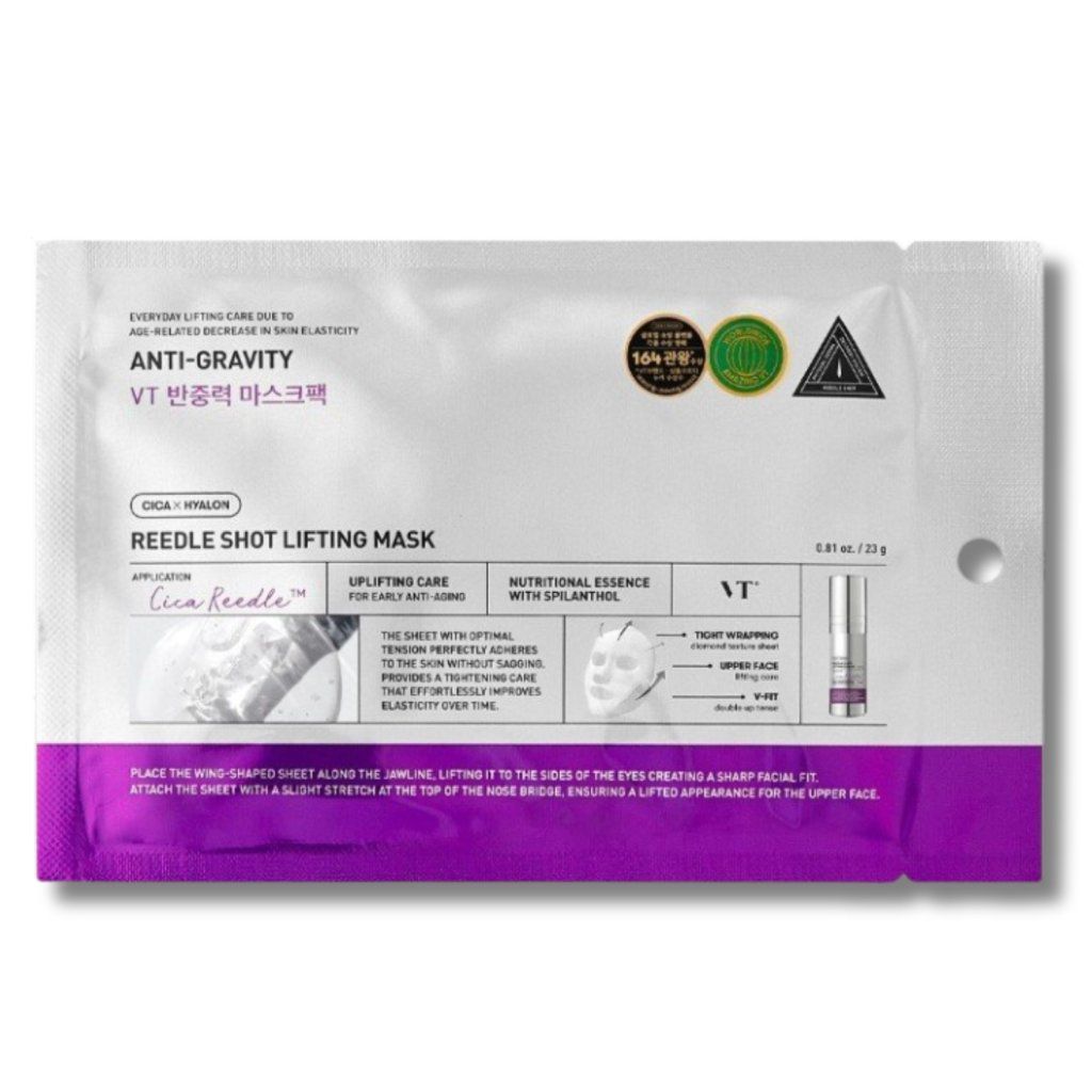 Tato specializovaná liftingová maska od korejské značky VT Cosmetics je navržena pro cílenou péči o pleť, která ztrácí pevnost a pružnost. Díky technologii Reedle Shot – jemným mikrojehličkám, které usnadňují pronikání aktivních složek – se účinné látky dostávají hlouběji do pokožky a podporují její regeneraci a obnovu. Masku tvoří elastický materiál s diamantovou strukturou, který dokonale přilne k obličeji i spodním konturám a poskytuje okamžitý liftingový efekt. Po použití je pleť viditelně hladší, hydratovaná a působí mladistvěji.